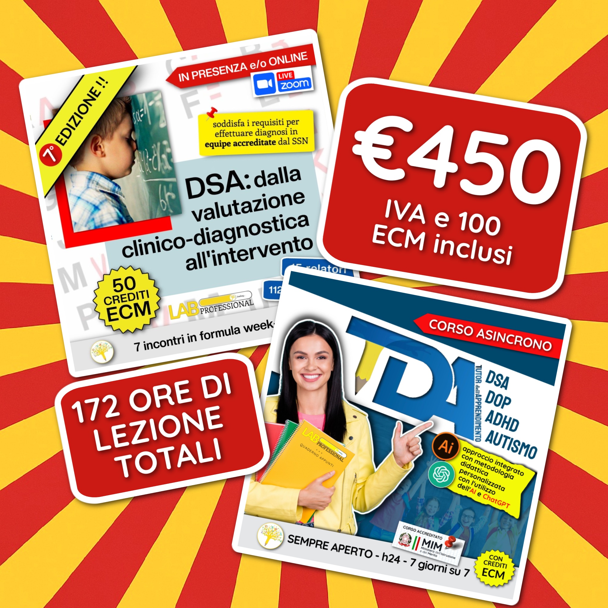 • se sei in questa pagina è sufficiente cliccare su AGGIUNGI AL CARRELLO ed inserire il codice coupon DSA24 per avere i €70 di sconto da €520 a €450 (IVA e ECM inclusi)